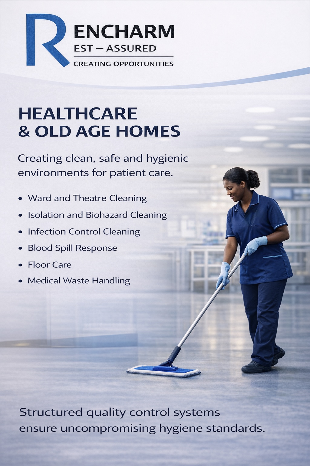 Care environments require strict infection control, precise disinfection, and full compliance. Focus areas include high-touch surfaces, patient rooms, treatment and sanitary areas, and staff zones, using hospital-grade disinfectants and color-coded tools to prevent cross-contamination. Teams are trained in hygiene protocols, PPE, and documentation.