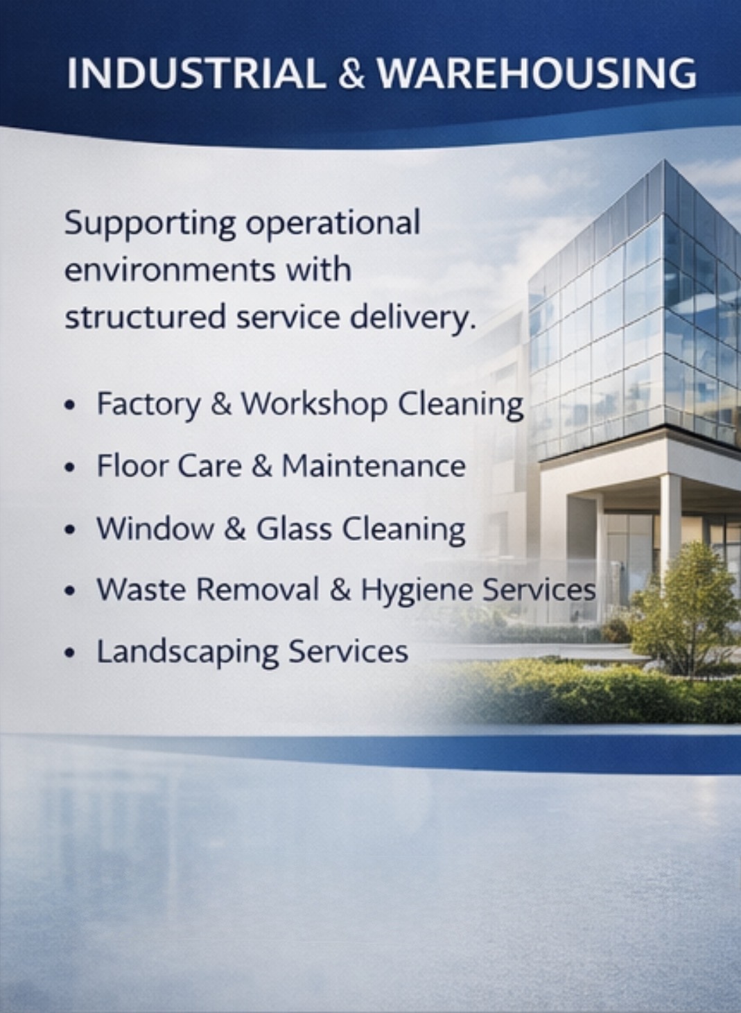 This industrial and commercial cleaning company keeps care facilities, office parks, and holiday resorts spotless, safe, and welcoming. Hygiene is prioritised for infection control, compliance, and the wellbeing of residents, guests, and staff, with every surface cleaned using proven methods and professional-grade equipment.